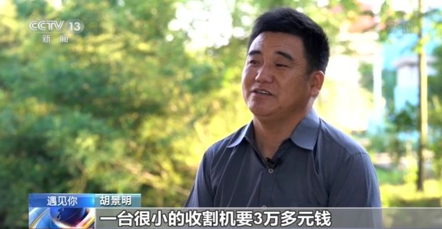 胡景明:一臺(tái)很小的收割機(jī)要3萬多元錢,我一聽半天沒出聲。
