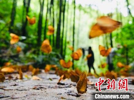 圖為金平縣的中國(guó)·紅河蝴蝶谷內(nèi)箭環(huán)蝶幼蟲在短時(shí)間大量集中羽化成蝶。 劉冉陽 攝
