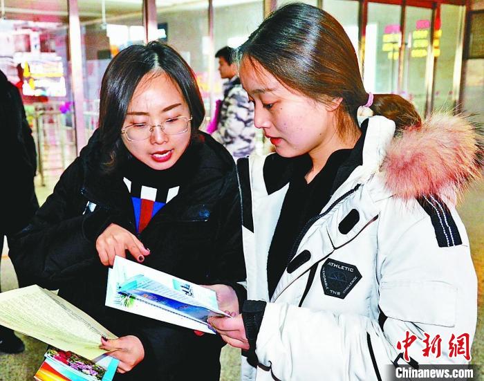 菏澤市返鄉(xiāng)創(chuàng)業(yè)服務(wù)中心工作人員為返鄉(xiāng)人員講解創(chuàng)業(yè)扶持政策。 菏澤市委宣傳部供圖。
