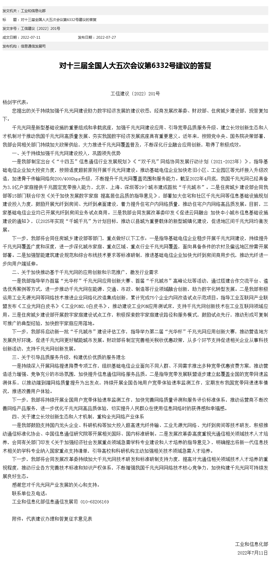 中新網(wǎng)7月27日電 工信部網(wǎng)站27日發(fā)布對十三屆全國人大五次會議第6332號建議的答復。工信部表示,將指導基礎電信企業(yè)穩(wěn)步開展千兆光網(wǎng)建設,持續(xù)提升千兆光網(wǎng)覆蓋廣度和深度,進一步深化城市家庭、重點區(qū)域、重點行業(yè)千兆光網(wǎng)覆蓋,面向具備條件的農村及偏遠地區(qū)按需開展部署。加強智能建筑建設規(guī)范和綜合布線技術要求等標準研制,推進基礎電信企業(yè)加快光纖到房間商用步伐,推動光纖進一步向用戶端延伸。(中新財經(jīng))