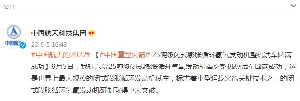 中國重型火箭25噸級閉式膨脹循環(huán)氫氧發(fā)動機(jī)整機(jī)試車圓滿成功