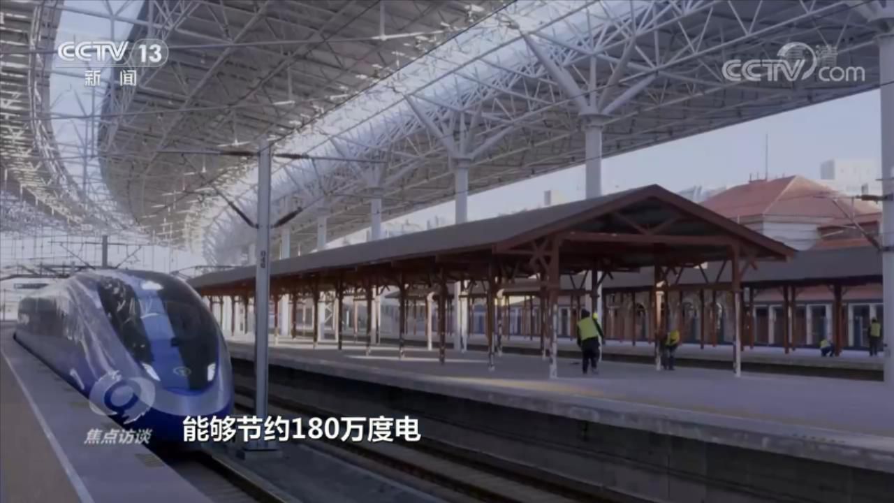 朱彥說:“最后列車的阻力,和和諧號(hào)相比能耗降低了11%,到京張智能動(dòng)車組的時(shí)候,我們又進(jìn)一步降低到了15%,列車的綜合能耗也降低了10%以上,也就相當(dāng)于列車運(yùn)行一年能夠節(jié)約180萬度電。”