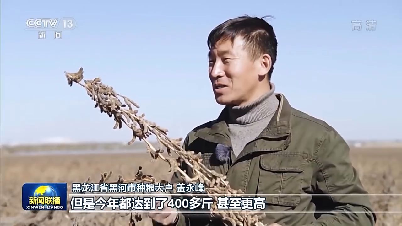 黑龍江省黑河市種糧大戶 蓋永峰:(以前每畝)要能打300多斤400斤,那都是很高的產(chǎn)量了,但是今年都達到了400多斤,甚至更高,有的能達到500多斤。