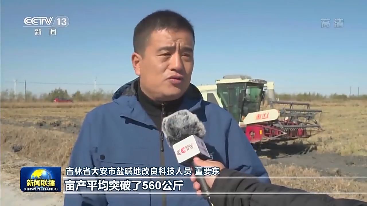吉林省大安市鹽堿地改良科技人員 董要東:經(jīng)過我們實打?qū)嵤諟y產(chǎn),畝產(chǎn)平均突破560公斤。