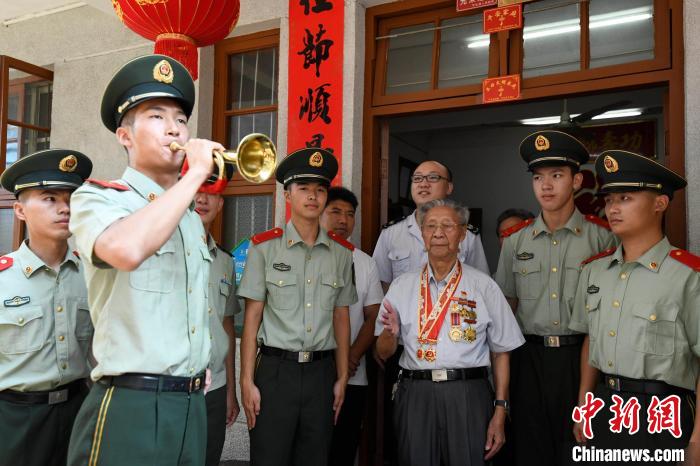 寧化籍96歲抗美援朝老兵張美庚走進武警三明支隊軍營?!∥渚髦ш牴﹫D