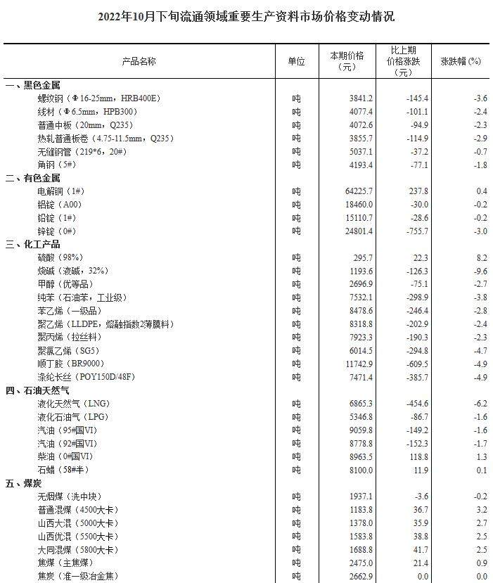 中新網(wǎng)11月4日電 國家統(tǒng)計局網(wǎng)站4日公布2022年10月下旬流通領(lǐng)域重要生產(chǎn)資料市場價格變動情況。據(jù)對全國流通領(lǐng)域9大類50種重要生產(chǎn)資料市場價格的監(jiān)測顯示,2022年10月下旬與10月中旬相比,15種產(chǎn)品價格上漲,32種下降,3種持平。其中,生豬(外三元)價格環(huán)比下跌0.7元,跌幅2.5%。(中新財經(jīng))