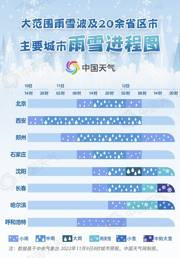 今冬北方首場大范圍雨雪來襲 一圖掌握重點(diǎn)城市雨雪進(jìn)程