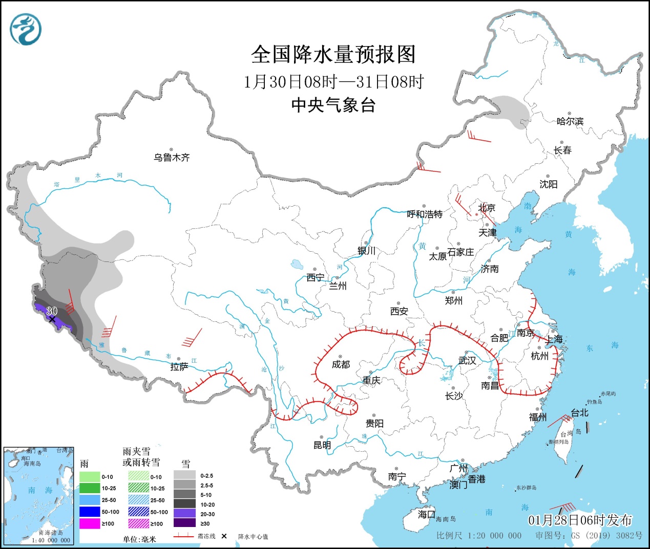 28日至30日,內(nèi)蒙古東北部、東北地區(qū)有降雪天氣,以小雪為主;29日至31日,西藏西部有小到中雪,部分地區(qū)有大到暴雪,局地大暴雪。