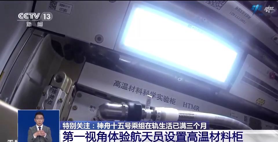 畫面中是航天員們正在設(shè)置高溫材料科學(xué)實(shí)驗(yàn)柜,這是支持在空間站微重力環(huán)境下進(jìn)行材料制備、加工、原位檢測、實(shí)時(shí)觀察和診斷于一體的新型實(shí)驗(yàn)裝置。最高加熱溫度能達(dá)到1600℃,溫度的穩(wěn)定度能達(dá)到±0.25℃,這個(gè)高溫材料科學(xué)實(shí)驗(yàn)柜的工作溫度、穩(wěn)定度和樣品數(shù)量、實(shí)時(shí)觀察成像技術(shù)均處于國際領(lǐng)先水平。