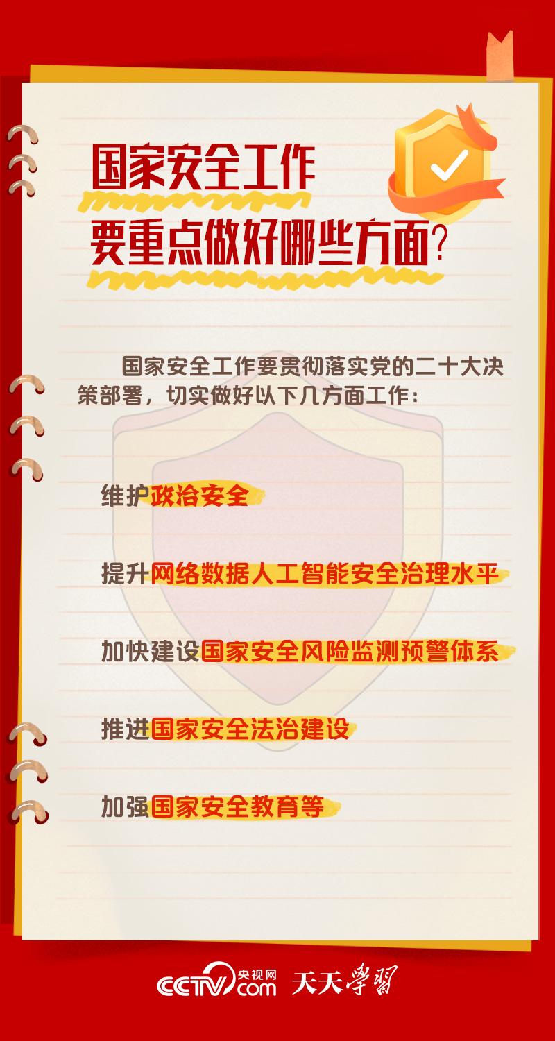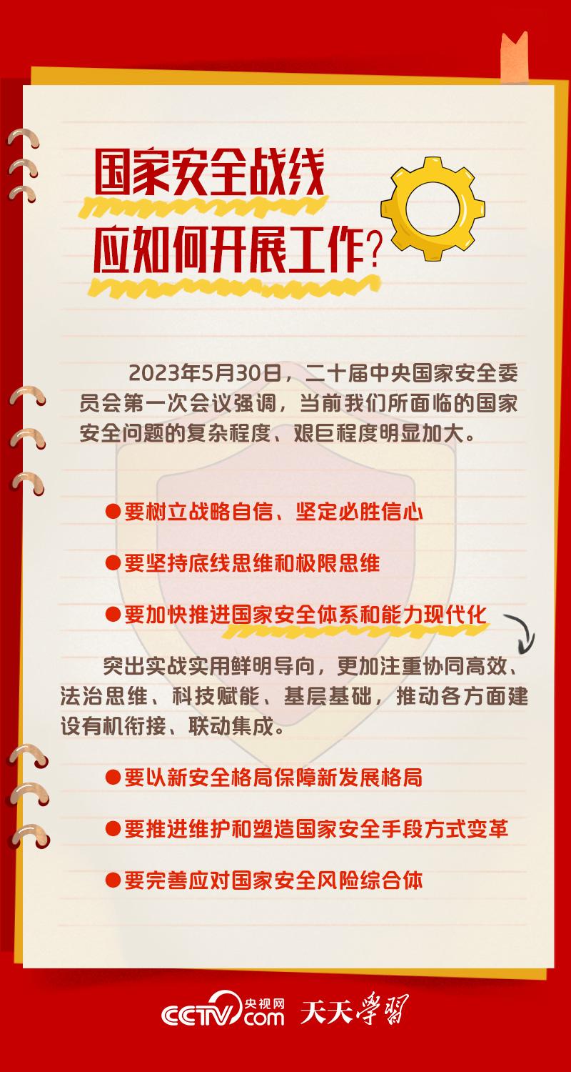天天學(xué)習(xí) 5月30日,習(xí)近平總書記主持召開二十屆中央國家安全委員會第一次會議時強(qiáng)調(diào),要全面貫徹黨的二十大精神,深刻認(rèn)識國家安全面臨的復(fù)雜嚴(yán)峻形勢,正確把握重大國家安全問題,加快推進(jìn)國家安全體系和能力現(xiàn)代化,以新安全格局保障新發(fā)展格局,努力開創(chuàng)國家安全工作新局面。