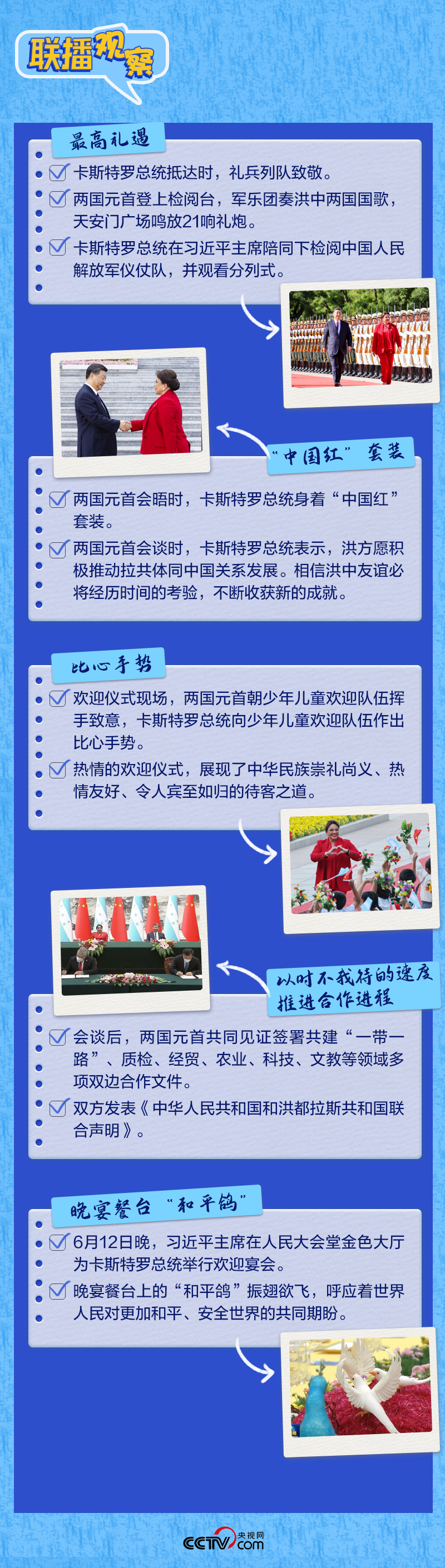 6月12日下午,習(xí)近平主席在人民大會堂同來華進(jìn)行國事訪問的洪都拉斯總統(tǒng)卡斯特羅舉行會談。
