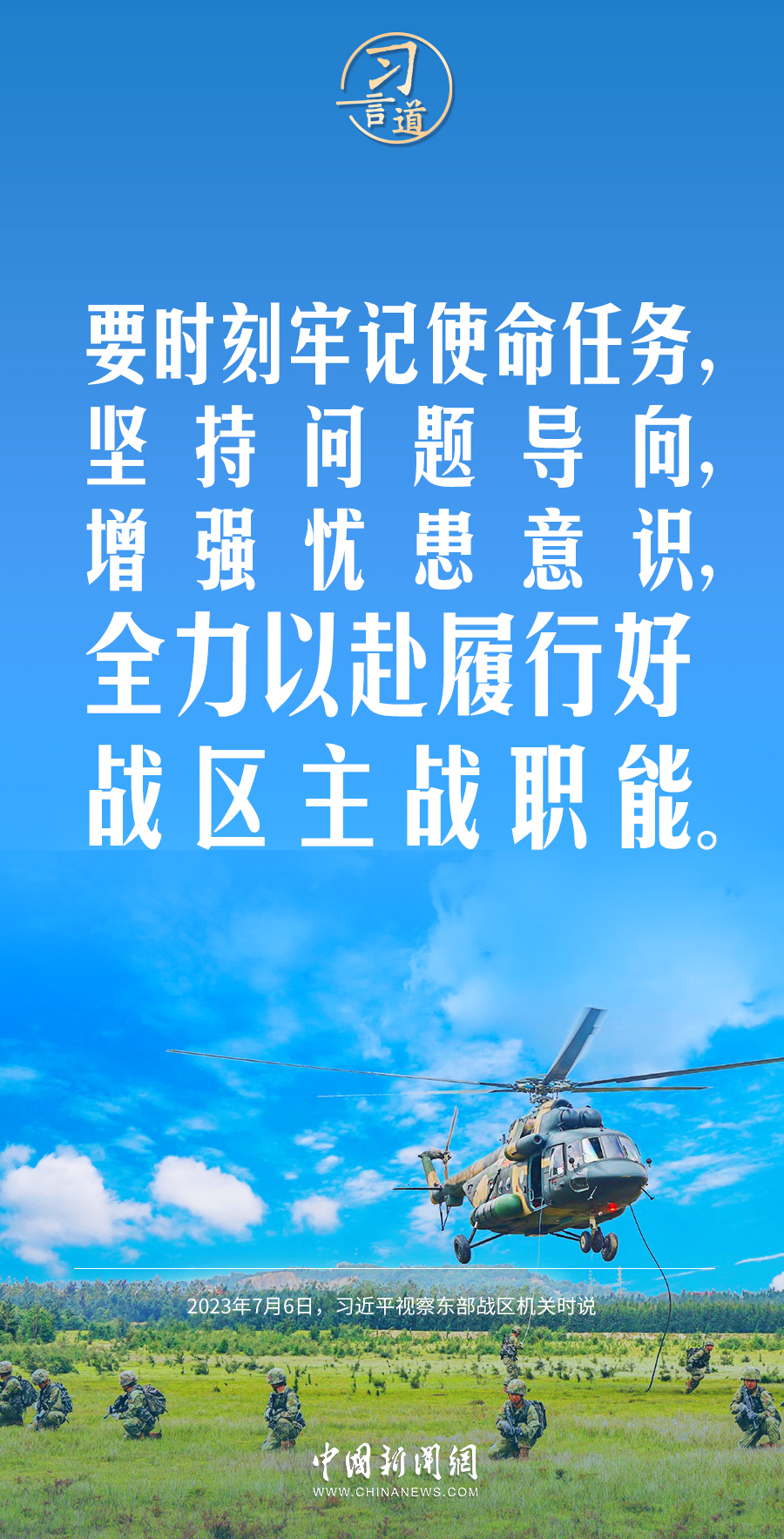 中共中央總書記、國家主席、中央軍委主席習(xí)近平6日視察東部戰(zhàn)區(qū)機(jī)關(guān),代表黨中央和中央軍委,向東部戰(zhàn)區(qū)全體官兵致以誠摯問候。習(xí)近平指出——