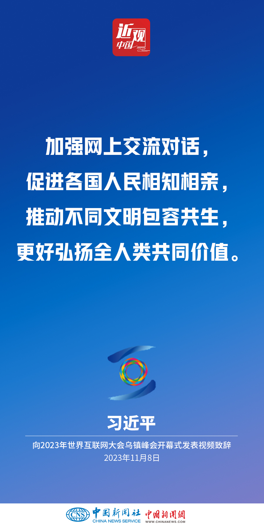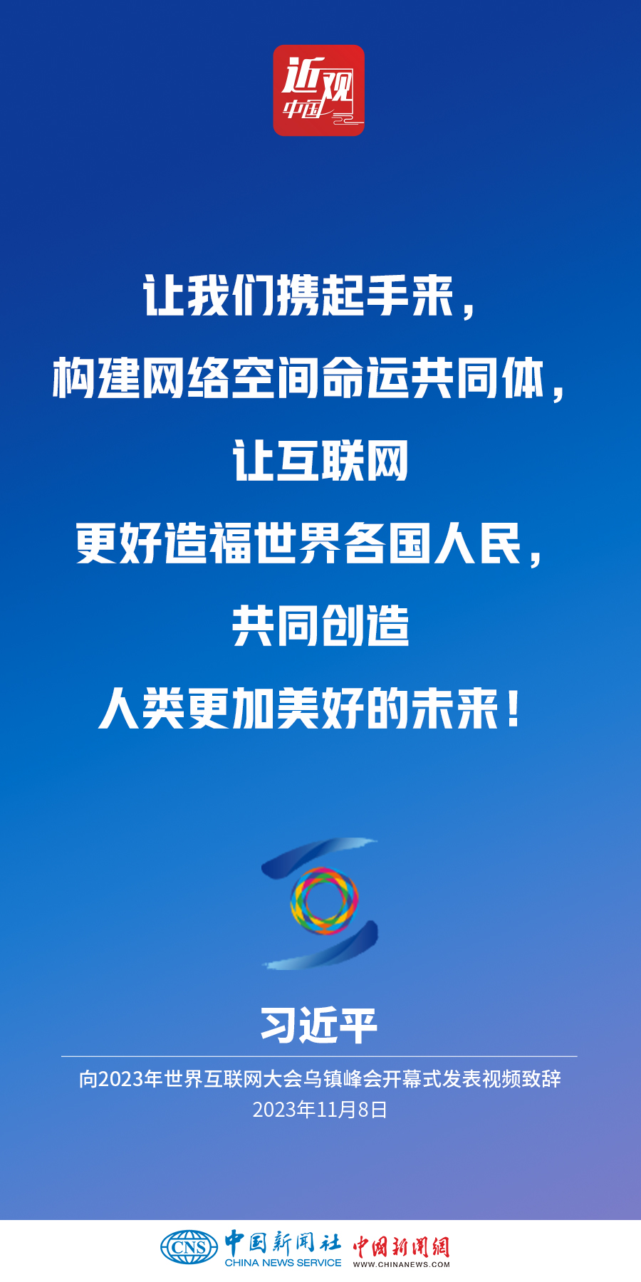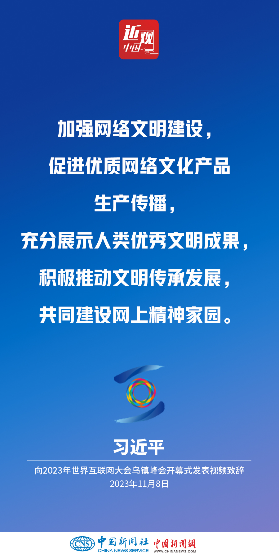 11月8日上午,國(guó)家主席習(xí)近平向2023年世界互聯(lián)網(wǎng)大會(huì)烏鎮(zhèn)峰會(huì)開(kāi)幕式發(fā)表視頻致辭。他指出——