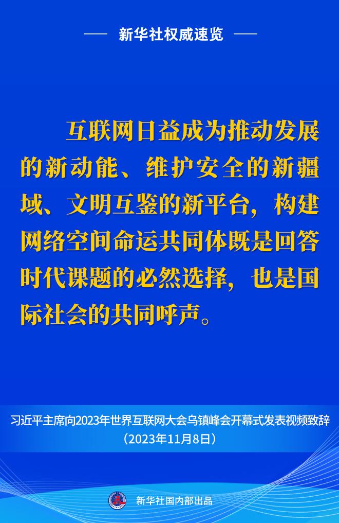 新華社權威速覽丨習近平主席向2023年世界互聯(lián)網大會烏鎮(zhèn)峰會開幕式視頻致辭金句