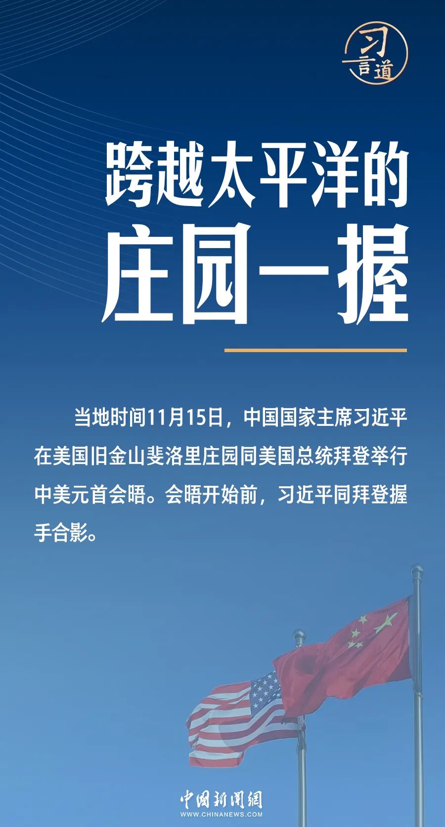 一年過去,又是一個11月,此次斐洛里莊園會晤,習(xí)近平依然以討論兩個大國的相處之道作為開場白: