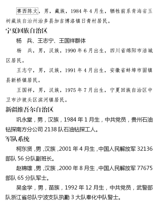 上榜勇士中有勇斗持刀犯罪嫌疑人身負重傷的張照杰、姚玉龍、王沖、王永芳;有從高橋跳水救人的周中磊、曾文文、周海;有從隨時可能爆炸的事故車輛中救出司機母子的湯益鑫;有冒著煤氣罐爆炸危險制服劫持孩子歹徒的蔡國榮;有救援被困電梯內(nèi)同事而導(dǎo)致左小腿截肢的翟元敏;有休假期間水下連續(xù)救人的現(xiàn)役軍人柯東賢、吳金學(xué)、趙錦雄;更有見義勇為英勇犧牲的李偉倫、張嘉俊、張可可、李峰武、安西德、何同猛、曾維龍、胡喜明、李振華、東周才仁、賽西陳文11位同志。勇士們見義勇為事跡鼓舞人心、振奮精神、催人奮進。他們用血汗甚至生命秉承、詮釋了中華民族傳統(tǒng)美德,用奮不顧身的實際行動踐行了社會主義核心價值觀。
