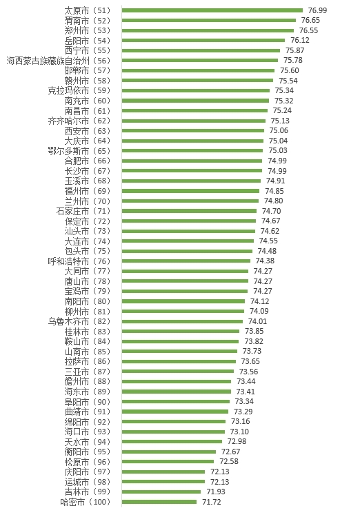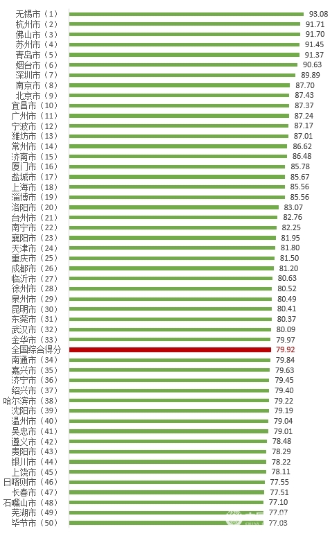 中消協(xié)相關(guān)負(fù)責(zé)人分析指出,100個(gè)被測評城市排名總體穩(wěn)定,47個(gè)城市滿意度得分提高,城市得分表現(xiàn)和提升數(shù)量均優(yōu)于2022年。除個(gè)別城市外,東部和南部城市、經(jīng)濟(jì)發(fā)展水平高的城市得分要高于中西部及經(jīng)濟(jì)發(fā)展一般的城市;東部地區(qū)加速引領(lǐng)消費(fèi)者滿意度向好提升,中西部地區(qū)加速追趕,城市之間分差有所降低。無錫、杭州、佛山、蘇州、青島、煙臺(tái)、深圳、南京、北京、宜昌分列100個(gè)城市消費(fèi)者滿意度綜合得分第一至十名。