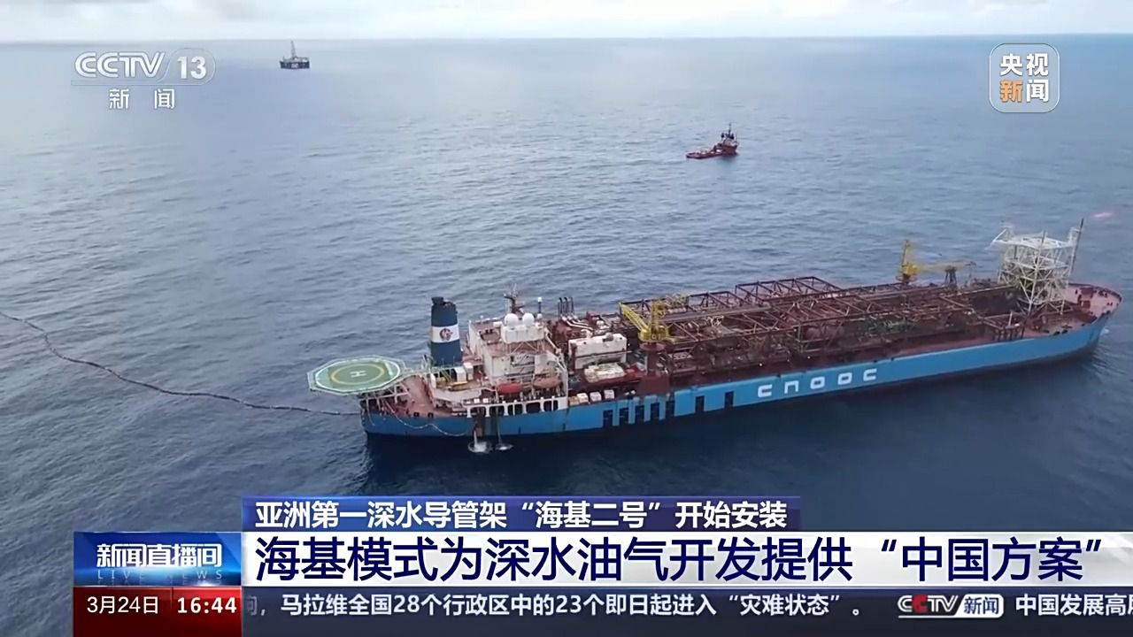 2024年3月24日,“海基二號”深水導管架到達施工海域。