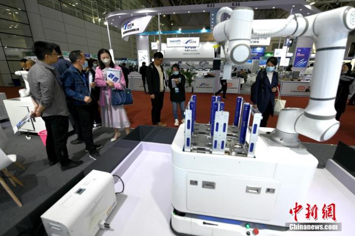 資料圖:3月9日,2023中國(福州)工業(yè)博覽會在福州海峽國際會展中心舉辦,各種機(jī)器人自動化設(shè)備吸人眼球。