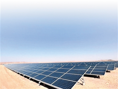 中國電建在阿爾及利亞撒哈拉沙漠中建設的光伏電站。