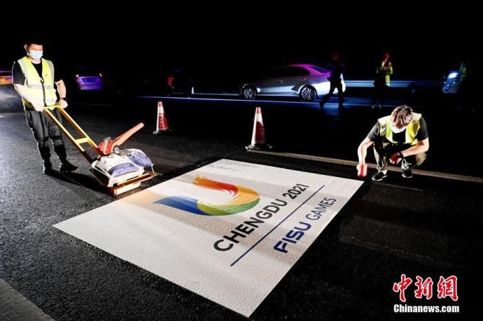 資料圖:圖為成都大運會專用車道地標(biāo)設(shè)立現(xiàn)場。中新社記者 安源 攝