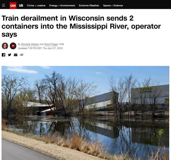 美國克勞福德縣應(yīng)急管理專家馬克·邁爾表示,這列火車載有危險品。但他稱,掉進(jìn)河里的車廂中沒有任何被認(rèn)為是電池的有害物質(zhì)。