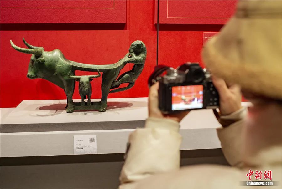 此外,還有專家延伸解讀:在古滇國,虎為百獸之王,象征權(quán)威,牛則是財富和生命的標(biāo)志。?;~案中的虎、牛形象成為滇人重點表達(dá)的主題,顯示了滇人崇虎、崇牛之情,表達(dá)了對權(quán)力、財富和生命的向往。