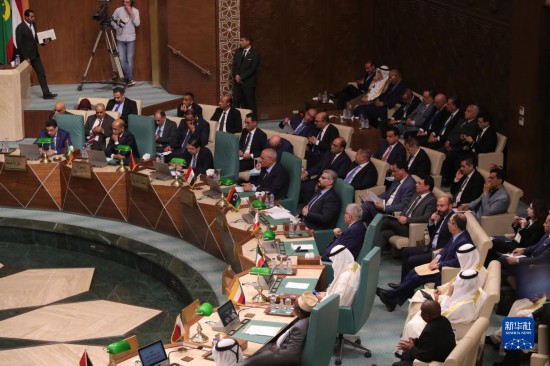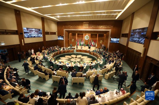 這是5月7日在埃及開羅拍攝的阿拉伯國家聯(lián)盟外長級特別會(huì)議現(xiàn)場。新華社發(fā)(艾哈邁德·戈馬 攝)