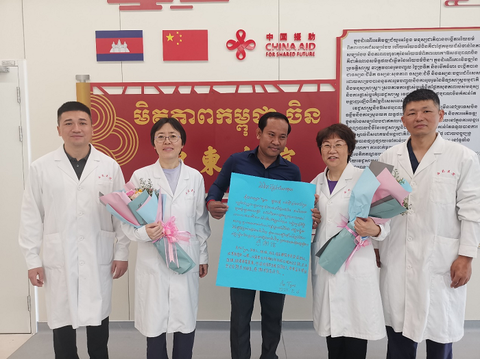 人民網曼谷5月16日電 (記者趙益普)16日,中國援柬中醫(yī)抗疫醫(yī)療隊在位于柬埔寨金邊的考斯瑪中柬友誼醫(yī)院舉辦“中醫(yī)門診開放日”活動,醫(yī)療隊為所有來門診的患者解疑、看診、贈送藥品。15日,中國援柬中醫(yī)抗疫醫(yī)療隊全體17名隊員獲得柬埔寨衛(wèi)生部頒發(fā)的柬埔寨王國騎士勛章。據悉,醫(yī)療隊已順利完成一年的任務,即將于近期返回中國。