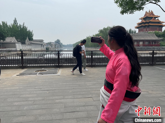 鬧增拉毛第一次通過(guò)手機(jī)鏡頭拍攝故宮外圍的場(chǎng)景。袁秀月 攝