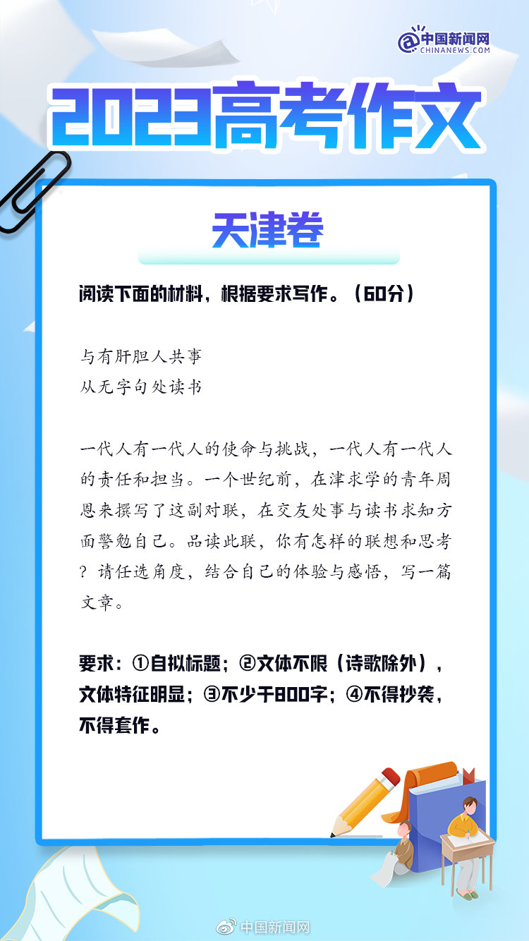 中新網(wǎng)6月7日電 2023年全國(guó)高考今日開(kāi)考,語(yǔ)文是首門考試科目。其中,受人關(guān)注的作文題目已陸續(xù)公布,快來(lái)圍觀!各地高考語(yǔ)文作文題目匯總↓↓↓