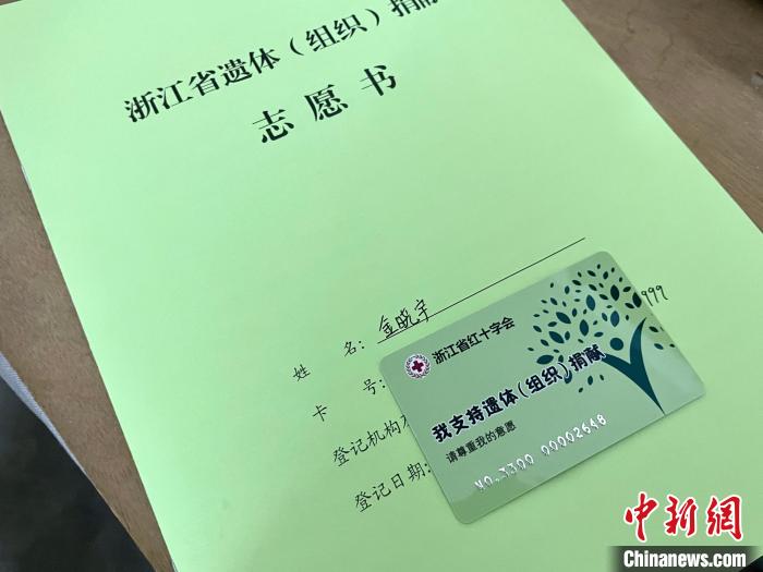 金曉宇的遺體捐贈志愿書。 張煜歡 攝