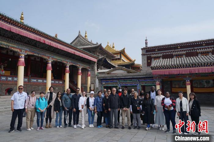 圖為外國記者在塔爾寺合影?!●R銘言 攝
