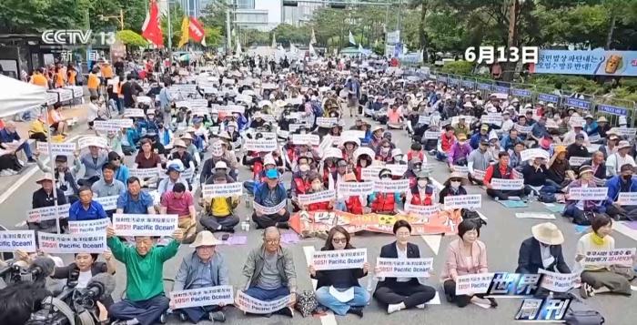 來自國(guó)際社會(huì)的反對(duì)之聲更加強(qiáng)烈。 6月13日,韓國(guó)漁民在首爾集會(huì),反對(duì)日本政府的核污染水排海計(jì)劃。