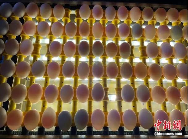 進行人工光檢的鴨蛋。徐珊珊 攝
