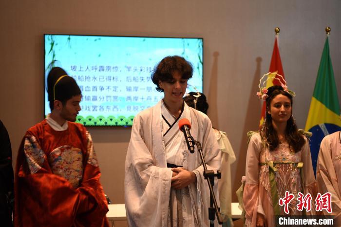 中新社圣保羅6月22日電 題:漢服、書法、中國(guó)?。喊臀髑嗄陼诚肓魧W(xué)夢(mèng)