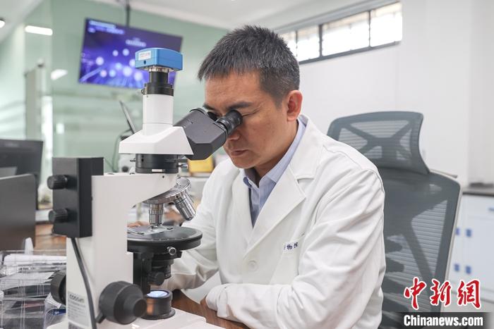 圖為2023年6月19日,景德鎮(zhèn)古陶瓷基因庫實驗室內(nèi),景德鎮(zhèn)御窯博物院院長翁彥俊使用電子顯微鏡在觀察古陶瓷標(biāo)本。 中新社記者 劉力鑫 攝