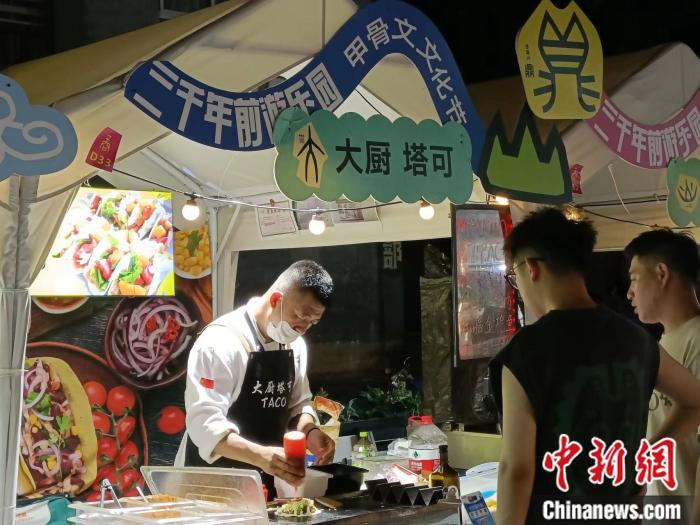 中新財(cái)經(jīng)了解到,該夜市舉辦時(shí)間為6月9日-7月9日,每天下午4點(diǎn)-晚上10點(diǎn),為沉浸式甲骨文主題夜市。盡管打著甲骨文藝術(shù)節(jié)的旗號(hào),但在涵蓋小吃、飲品、手工飾品、互動(dòng)游戲等各色賣(mài)點(diǎn)夜市上,游客們依然用行動(dòng)投票出了他們最感興趣的環(huán)節(jié)——排起長(zhǎng)隊(duì)的,無(wú)一不是特色小吃。