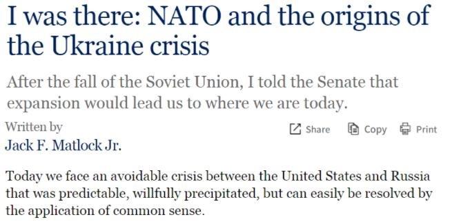 △美國昆西負(fù)責(zé)任治國研究所網(wǎng)站:美國最后一任駐蘇聯(lián)大使馬特洛克曾撰文感嘆,“我們今天正面臨一場原可避免的危機。這是一場可被預(yù)測、也的確曾被預(yù)測、卻又被蓄意促成的危機”。