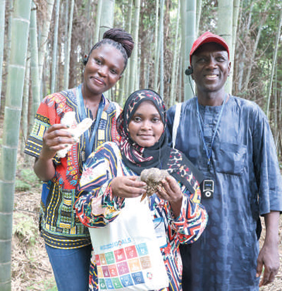 6月18日,聯(lián)合國(guó)學(xué)習(xí)團(tuán)在福建省南平市順昌縣參觀林下菌草栽培竹蓀。