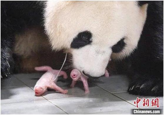 當(dāng)?shù)貢r間2023年7月7日,大熊貓“愛寶”在韓國三星愛寶樂園產(chǎn)下雙胞胎幼崽。圖為“愛寶”與幼崽?!?韓國三星愛寶樂園供圖)