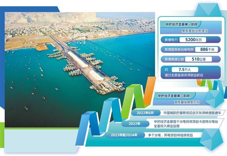 當前正處于中巴經(jīng)濟走廊建設的第二階段,這也是至關重要的高質量發(fā)展新階段。中巴雙方在走廊框架下,進一步加強巴國工業(yè)化進程、人力資源培訓和產(chǎn)業(yè)園區(qū)建設,在扶貧、醫(yī)療、農業(yè)以及互聯(lián)網(wǎng)等眾多與民生息息相關的領域持續(xù)深化合作,力求創(chuàng)造更多就業(yè)機會,不斷推動巴基斯坦的經(jīng)濟和社會現(xiàn)代化發(fā)展,造福當?shù)孛癖姟?022年6月,中國援助巴基斯坦瓜達爾東灣快速路通車,打通了瓜達爾港和卡拉奇之間的交通運輸通道。同年,中巴經(jīng)濟走廊首個水電投資項目——卡洛特水電站全面投入商業(yè)運營,每年將向巴基斯坦提供32億千瓦時廉價清潔電能,滿足當?shù)?00萬人用電需求,每年可節(jié)約標準煤約140萬噸,減少二氧化碳排放350萬噸。今明兩年,走廊框架下的多個水電、風電項目將陸續(xù)投運,未來巴基斯坦在清潔能源領域大有可為。