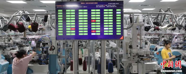 以縫頭為例,在一體化襪機(jī)之前,傳統(tǒng)的手工縫頭需要人工操作,效率很低,更新為襪機(jī)后,成本降低了至少一半。而智能系統(tǒng)端,機(jī)器的效率則被更加量化地體現(xiàn)在大屏幕上,一目了然,哪臺(tái)襪機(jī)出現(xiàn)問題,車間數(shù)據(jù)顯示屏就能看到,避免生產(chǎn)出次品襪子造成浪費(fèi)。