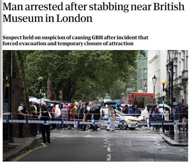 中新網(wǎng)8月9日電 據(jù)英國《衛(wèi)報》報道,當?shù)貢r間8日,英國倫敦大英博物館附近發(fā)生持械傷人事件,一名男子被刺傷,嫌犯已被警方逮捕。