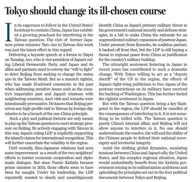 和評(píng)理 | 日應(yīng)停止干涉中國(guó)內(nèi)政 勿引火燒身重蹈覆轍