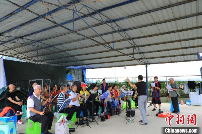 8月10日,在貴州省遵義市桐梓縣九壩鎮(zhèn)避暑的旅居游客們,練習唱歌和器樂演奏。李甜甜攝