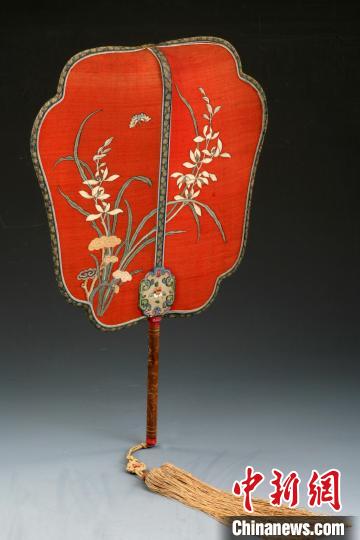 沈陽(yáng)故宮院藏的清檀木柄大紅緙絲蘭蝶扇為清宮后妃日常生活用品?!?沈陽(yáng)故宮博物院供圖)