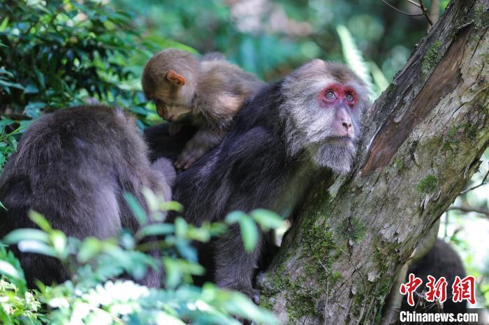 8月11日,在安徽省黃山市湯口鎮(zhèn)浮溪村——黃山野生猴谷拍攝的黃山短尾猴。樊成柱攝
