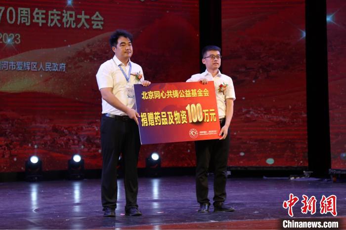 此次健康公益活動(dòng)由北京同心共鑄公益基金會(huì)主辦?;顒?dòng)正逢愛輝區(qū)新生鄂倫春族鄉(xiāng)鄂倫春族同胞下山定居70周年,受愛輝區(qū)委區(qū)政府邀請,北京同心共鑄公益基金會(huì)攜醫(yī)務(wù)志愿者、社會(huì)愛心人士參加了當(dāng)?shù)嘏e辦的相關(guān)慶祝活動(dòng)。其間,基金會(huì)向愛輝區(qū)捐贈(zèng)價(jià)值100萬元人民幣的藥品及物資,基金會(huì)秘書長殷延志獲評為助力愛輝區(qū)鄂倫春族發(fā)展“貢獻(xiàn)杰出人物”。