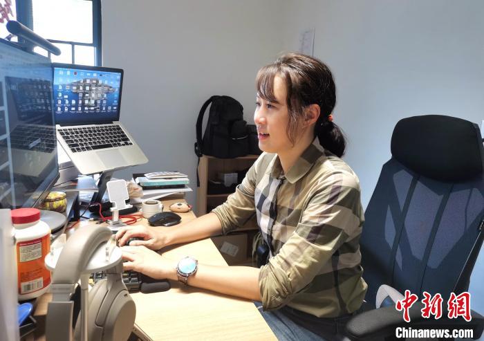 8月8日,吳婷婷在辦公室工作?! ≈行律缬浾?向一鵬 攝